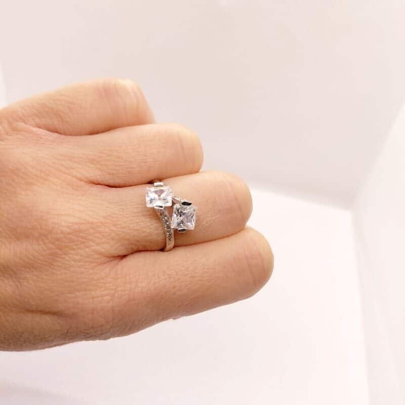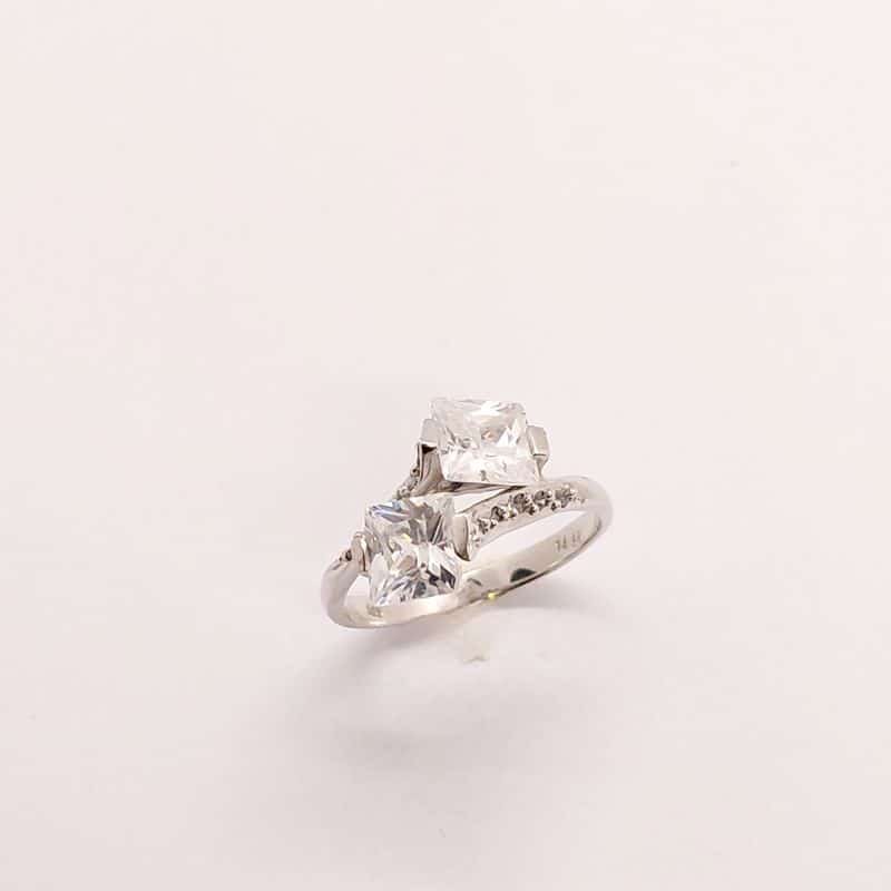 Ένα  μοντέρνο δαχτυλίδι  με  δύο πολύτιμες πέτρες ζιργκόν από καθαρό λευκόχρυσο 14 καρατίων, Ιδανικό για  γυναίκες με άποψη και κομψότητα.